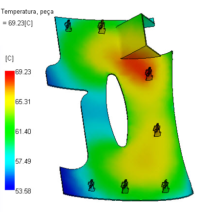 Nesta tarefa, irá interpretar os resultados da temperatura, da peça. Estes resultados representam a temperatura média da superfície da peça em todo o ciclo do molde.
