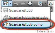 Clique na seta para baixo junto ao ícone Guardar na barra de ferramentas de Acesso Rápido e selecione Guardar estudo como.