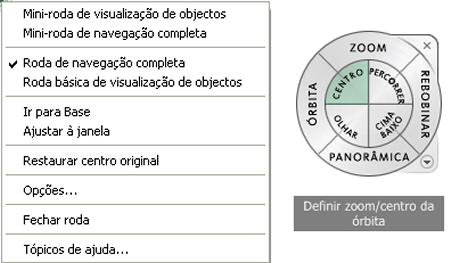 | Roda básica de visualização de objetos | Apresenta a roda de visualização de objetos grande. |