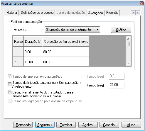 Introduza 25 segundos como o tempo de Compactação + Arrefecimento.