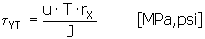 компонент X напряжения среза от крутящего момента T [МПа, фн/кв.дюйм] |