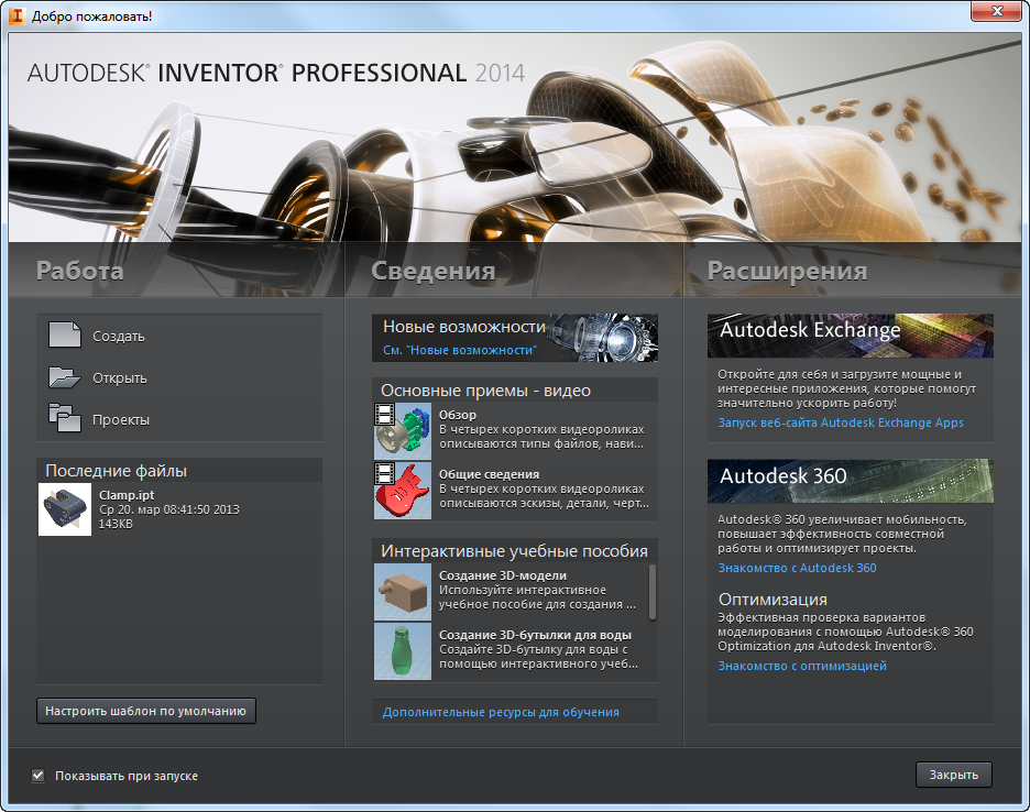 Если в Autodesk Inventor LT не открыт ни один файл, можно перейти непосредственно к команде "Проекты" на экране приветствия.