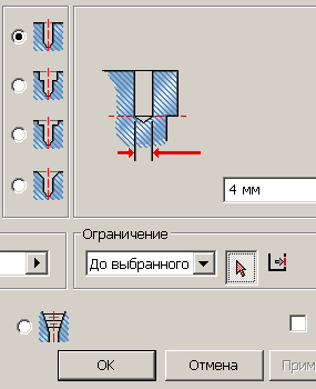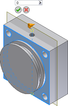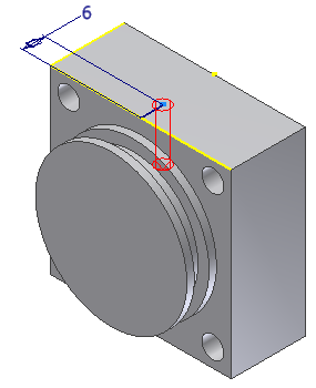 . Для обнаружения и использования центральной точки для расположения отверстия с помощью команды Отверстие разместите центральную точку в конце вертикальной линии. Примите эскиз.