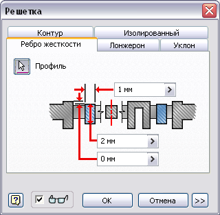 - Откройте вкладку Ребро жесткости и выберите остальные элементы линейной геометрии в качестве ребер жесткости. Примите значения размеров по умолчанию.
