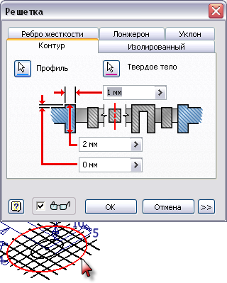 - На эскизе решетки выберите большой внешний эллипс для параметра "Профиль" на вкладке Граница. Примите настройки размера по умолчанию.