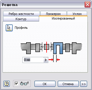- Выберите вкладку Изолированный и выберите для параметра "Профиль" малый эллипс в центре. Примите значение по умолчанию, равное 0 мм.