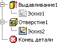 - Использование команды Отверстие вместо выдавливания с разрезом обеспечивает более эффективное управление элементом детали.