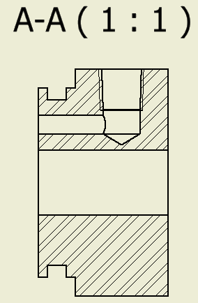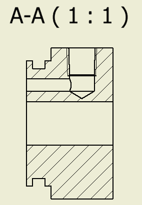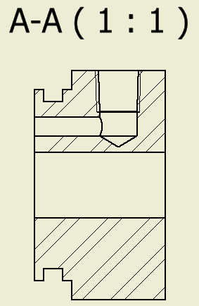 - Выполните зумирование вида А-А. Так как это вид одной детали, все контуры имеют идентичный образец штриховки.