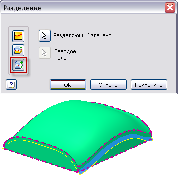 - Выберите смещенную поверхность в качестве инструмента разделения.