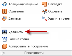 - Нажмите на панели "Поверхность" стрелку вниз для вывода списка доступных команд.