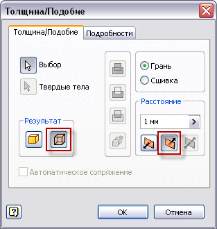 Выберите на панели "Поверхность" команду Толщина/Смещение.