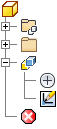 Все образцовые элементы в исходном файле — три выдавливания, отверстие, фаска и использованные эскизы — трансформируются в единое тело. Эти элементы недоступны для правки в производной детали. Неиспользованный включенный вами эскиз доступен и подлежит редактированию в производной детали.