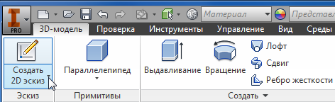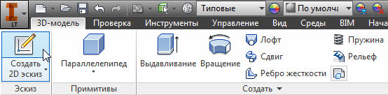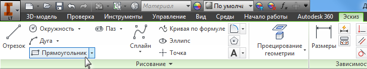Обратите внимание на то, что вкладки разделены на панели. Например, команды эскиза, используемые для вычерчивания геометрических элементов, сгруппированы на панели Рисование; подразделы панели сгруппированы с функционально связанными командами.
