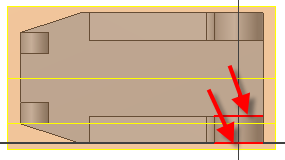 Вызовите команду Проецировать геометрию. Выберите два ребра монтажного выступа, как показано на рисунке, чтобы спроецировать их на эскизную плоскость. Прежде чем завершить выполнения команды Проецировать геометрию повторите процедуру для другого выступа.