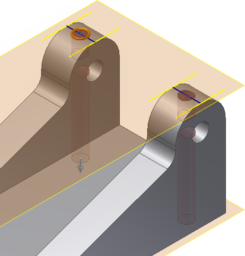 В этом разделе будет создана рабочая плоскость на криволинейной поверхности, чтобы предоставить плоскость для создания 2D-эскиза. Также будет использована спроецированная геометрия для точной вставки геометрии расположения отверстия.