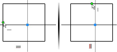 Примените зависимость горизонтальности между началом координат и серединой вертикальной линии. Наведите курсор на середину вертикальной линии для просмотра и выбора средней точки.