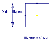 - В диалоговом поле "Редактирование размера" введите формулу Ширина = 49 мм для определения новой переменной Ширина с начальным значением 49 мм.