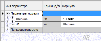 - Обратите внимание на то, что параметр d0 в столбце Параметры модели отображается как Ширина. Параметр модели также показывает, что параметр d1 равен значению Ширина.