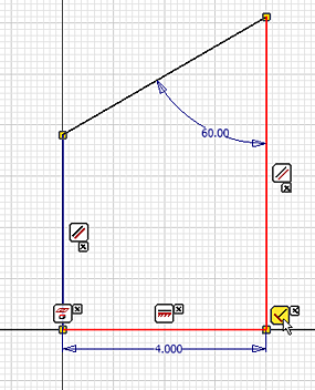 Подведите курсор к значку зависимости перпендикулярности, расположенному рядом с нижним концом крайнего правого вертикального отрезка.