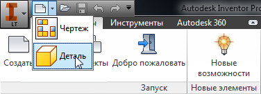 - На панели "Быстрый доступ" нажмите на стрелку раскрывающегося списка рядом с командойСоздать.
