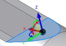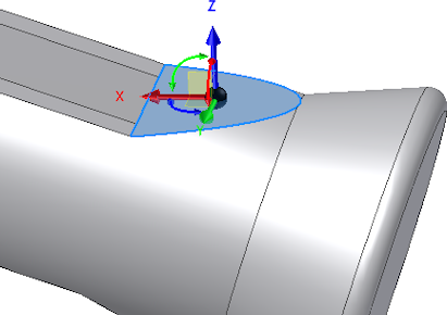 - Выберите изогнутую грань наверху детали. Появится триада Перемещение граней — свободное перемещение.
