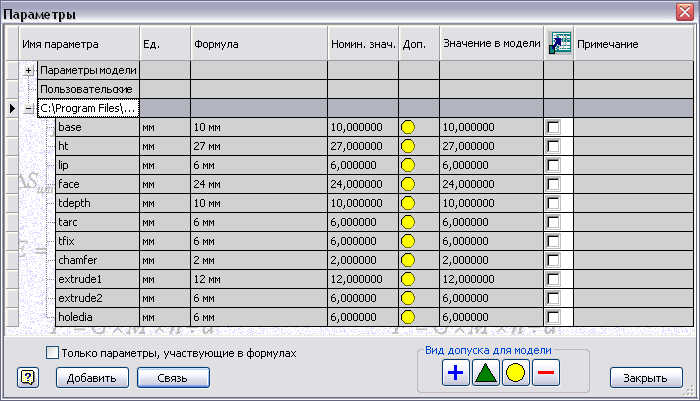 Программа импортирует внешнюю таблицу в диалоговое окно "Параметры".