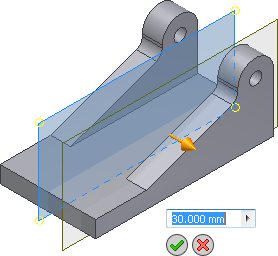 - Для точного определения расстояния от центральной плоскости введите в области ввода значений "Смещение" значение 30 мм.