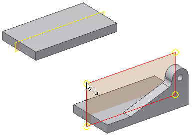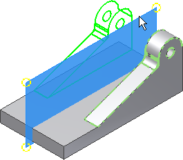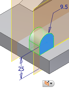 Начните новый эскиз на смещенной рабочей плоскости. (Выберите ребро рабочей плоскости и выберите на контекстной мини-панели инструментов команду Создать эскиз.) Прим.: Когда для нового эскиза выбирается рабочая плоскость, проецирование геометрии для "блокировки" эскиза на детали не выполняется. Спроецируйте ребра модели с целью определения геометрии для присоединения эскиза.