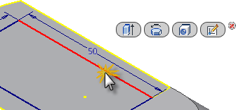 - Выберите один из четырех отрезков, составляющих эскизный прямоугольник, чтобы открыть мини-панель инструментов эскиза.