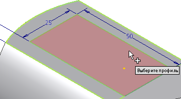 - Нажмите на кнопку Выдавливание и выберите прямоугольник в качестве контура для выдавливания. Обратите внимание: выбор нужно делать внутри прямоугольника.