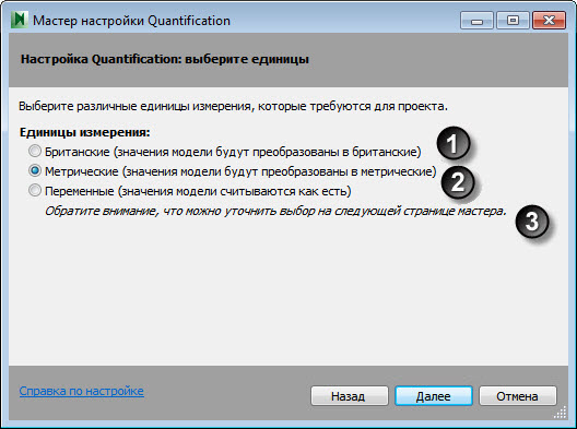 Выберите единицы измерения, которые должны использоваться в проекте.
