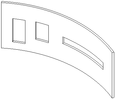 Квадратные и прямоугольные проемы в дуговых стенах вырезаются путем редактирование профиля фасада. См. раздел Редактирование профиля стены.