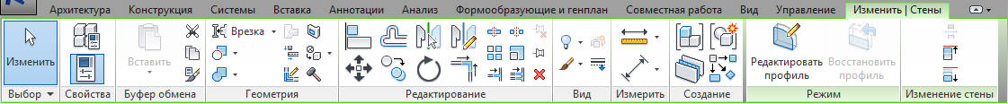 Лента отображается при создании или открытии файла. Она содержит все инструменты, необходимые для создания проекта или семейства.