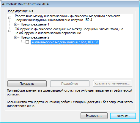 Пример предупреждения: аналитический элемент без параметров конструкции