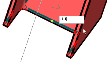 Текстовые элементы управления позволяют непосредственно изменить значение параметра смещения, отображаемое рядом с элементом управления конечной точкой. Щелкнув на этом элементе управления, можно отредактировать значение вручную. При вводе значения отметки изменяется положение соответствующей вершины или основания. Конец колонны перемещается только по вертикали.