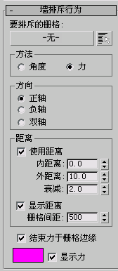 显示用来在解决方案中绘制墙壁排除力的颜色。单击此框可选择不同的颜色。默认设置是紫色。