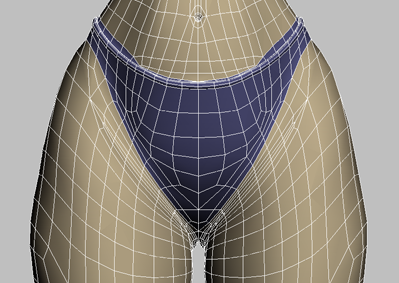 可以删除模型的边和顶点以及重塑臀部区域的多边形,这样此模型就能用 Physique 更好地进行工作。此模型同样被改变以使角色采用参考姿势。