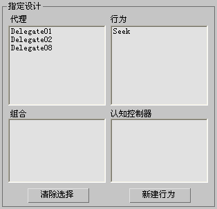 - 在“指定设计”组中,选择一个代理或组合,以及一个或多个行为或者一个认知控制器。