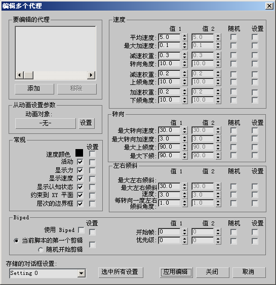 使用此功能来获得动画对象中的运动参数,并将它们应用到所有指定的代理中。此功能只影响“平均速度”、“最大加速度”和“翻转”参数。