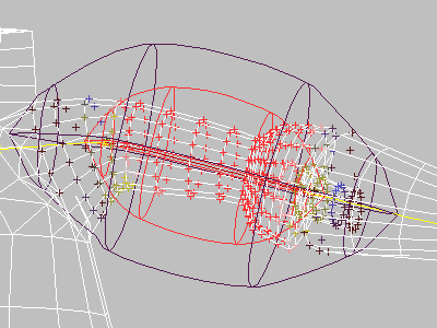 已经在“封套”子对象层级调整了内部和外部封套范围后,可能会发现仍然需要微控:在“混合封套”卷展栏中选择“横截面”或“控制点”选择层级。