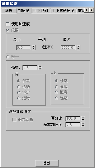 加速度以帧为单位测量,其中单位是当前的 3ds Max 系统单位。也就是说,由每帧速度变化的速率决定加速度。