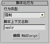 脚本化行为可以使用“MAXScript”来创建定制行为。脚本化的行为可以表现为以下三种行为类型中的一种:力、约束或方向。