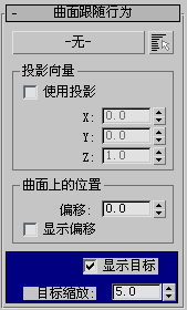 曲面跟随行为移动与对象曲面相关的代理,曲面既可以是静止的也可以是动画的。例如,可以应用面片栅格的动画噪波修改器来模拟波浪起伏的水面,由曲面追随管理的对象会一直保持在顶部。