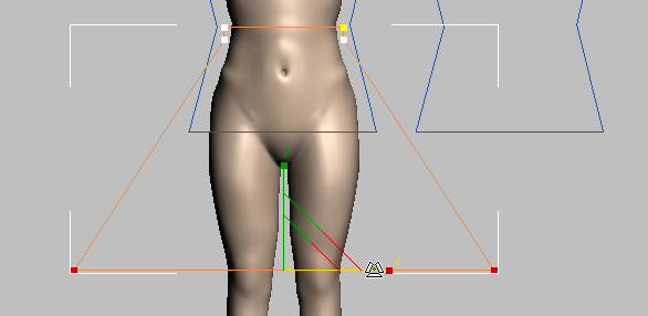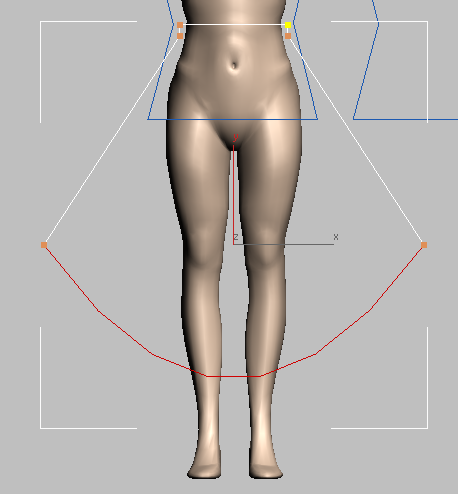 键的同时将鼠标指针拖至模特臀部的另一侧。这样可确保样条线分段是水平的。
