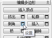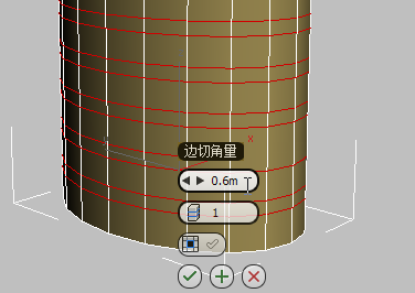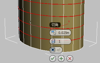 3ds Max 将显示“切角”工具的 Caddy 控件。