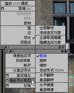 将“草图工具”与“自由形式”图形一起使用后,工作时都会涉及到以下两个步骤:首先,拖动以选择要重新定位的顶点;其次,绘制徒手笔划以显示要在其中放置选定顶点的“编辑 UVW”。