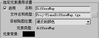 “选定元素通用设置”组中。“文件名”字段和“类型”字段将显示要创建的漫反射贴图的文件名。