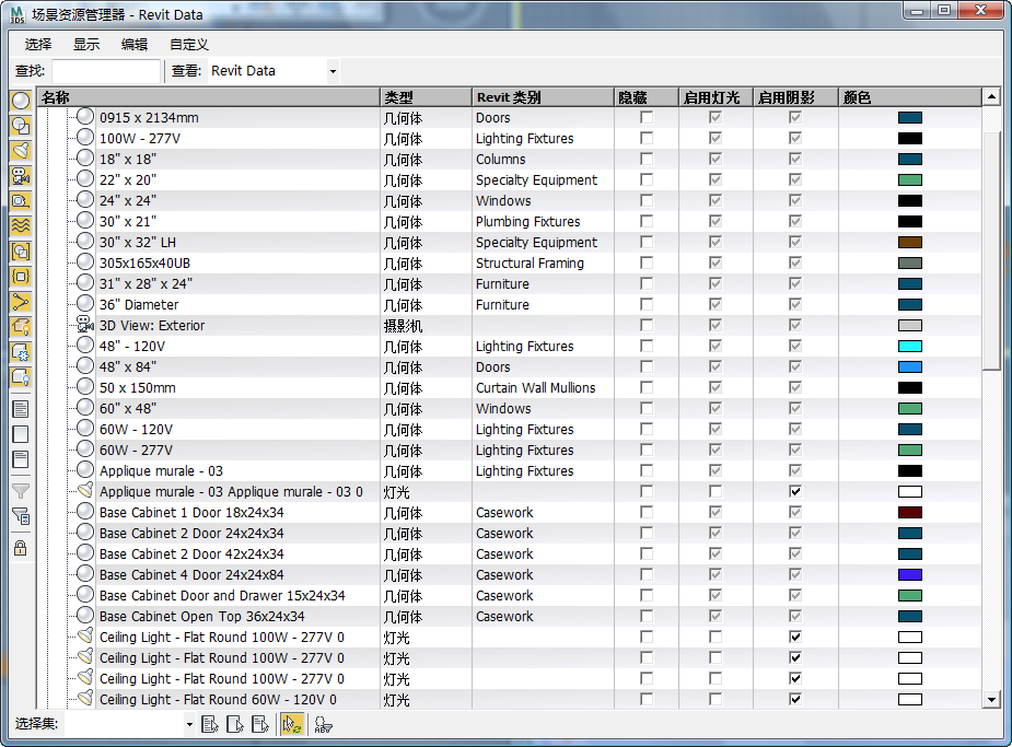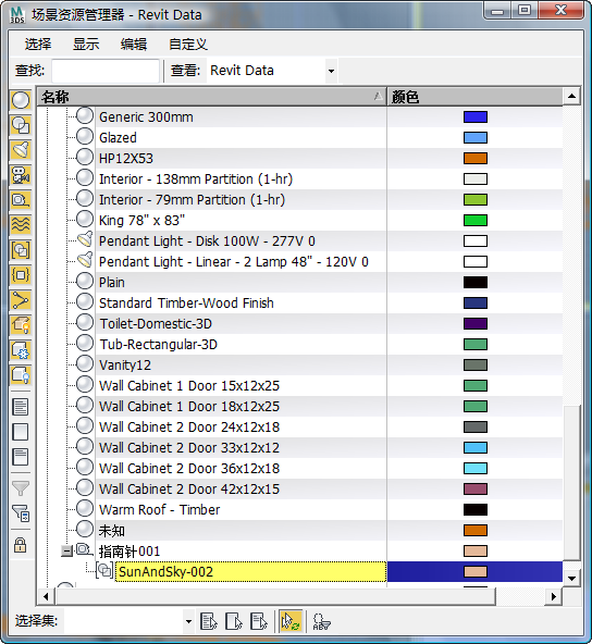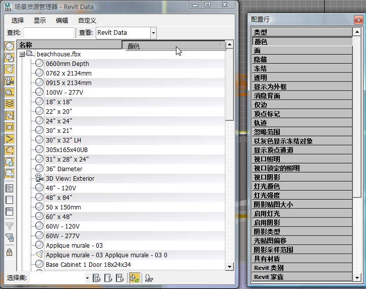3ds Max 会将“颜色”列添加到场景资源管理器。