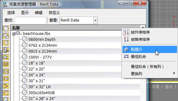 设置“场景资源管理器”以重新组织 Revit 对象: