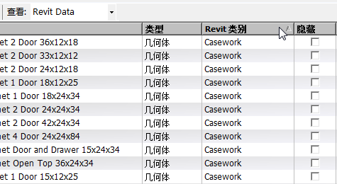 现在,所有从 Revit 场景文件导入的对象均按类别分组。滚动以便可以查看属于“家具”类别的对象。